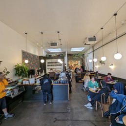 Not sure how it took me this long to try this place - coffee nerds should be pleased here! I thought the baristas were unusually sweet and attentive considering how packed the place was on a Saturday morning. One of them saw me staring at their valentines blend bag on the counter while my partner ordered my latte and offered to use the blend as the espresso in my drink! Most places give me shit when I request anything other than their house blend in a latte because some people think the amount of milk in a latte will drown out the complex notes of a higher end blend or single origin. Well those baristas were wrong and the Sterling barista who let me try their fancy seasonal blend was right to offer it - an Ethiopian/el sal blend that hit all the fruity/chocolatey notes I love. Very nice. :)