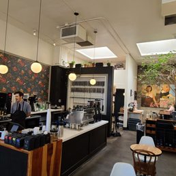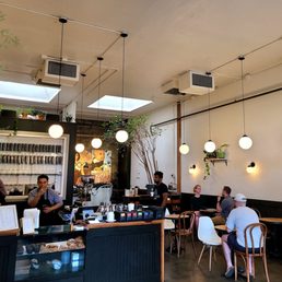 Service was excellent and the coffee was good too. The pastries could be improved and also warmed when served, especially the chocolate croissant. This place is very casual and there's a nice vibe overall.